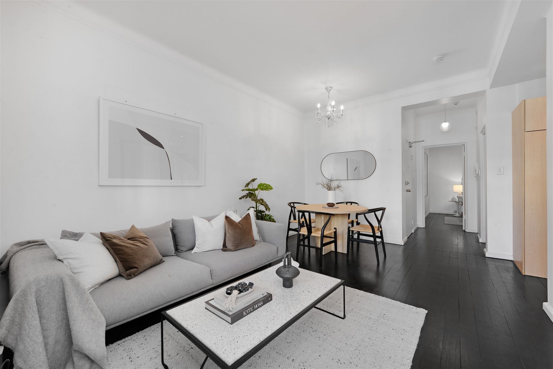 Well-proportioned living and dining room