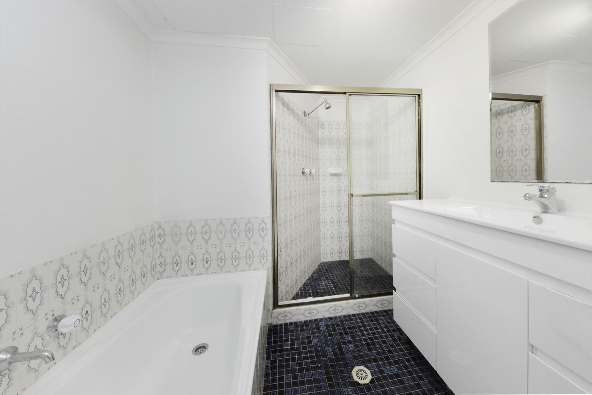 Original bathroom with separate shower and bathtub